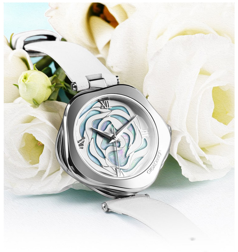 デンマークといえばのSKAGENも利用しているMother of Pearlで花びらを幻想的に見せたクォーツタイプと、歯車を覗かせる機械式タイプが存在します。