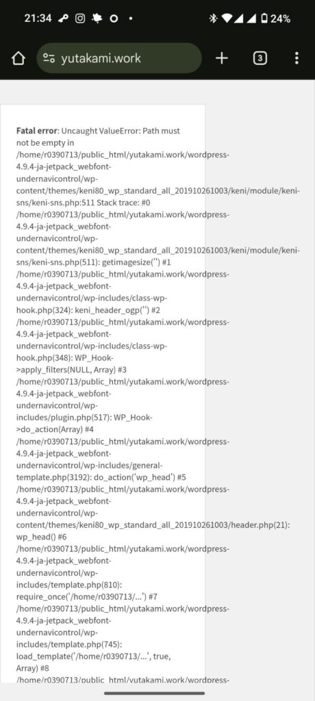 最新のWordPressへのバージョンアップのため、サーバーのPHPを8.4に変更、そしてWordPressを6.8xにバージョンアップしたことによって、従来利用していたテーマ「賢威8」でトップページに重大なエラーが発生しました。
