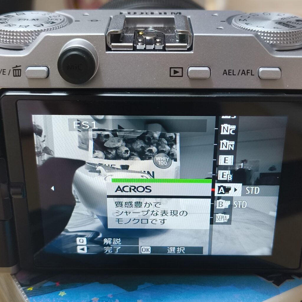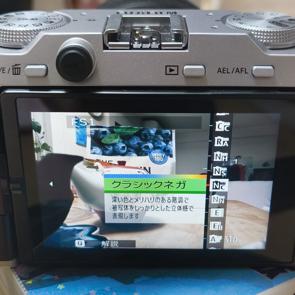 これらに加え、メニューからFsダイヤルに個別に設定できるフィルムが6つあり、合計で14のフィルムシミュレーションの利用が可能です。